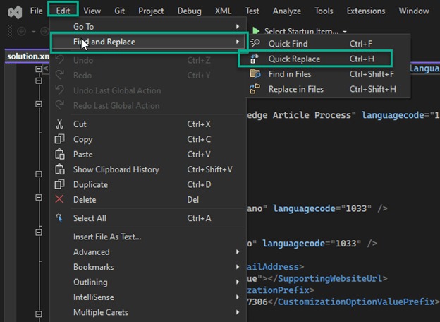 - Open the solution with Visual Studio and replace the prefix “new_” with your prefix